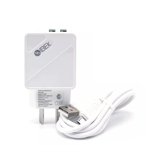 CARGADOR USB IBEK 5V-2.6A USB + CAB MICRO IB-2607