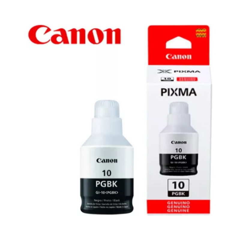 La Botella de Tinta Canon GI-10 es el complemento de alto rendimiento para seguir utilizando tu equipo PIXMA con eficiencia y practicidad.